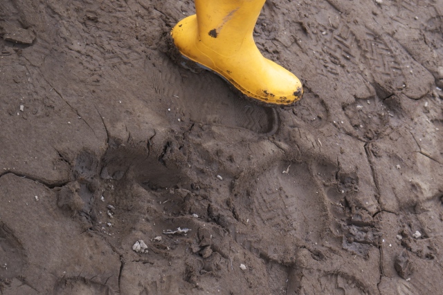 ツアー参加者さんの美脚 VS ヒグマの足跡